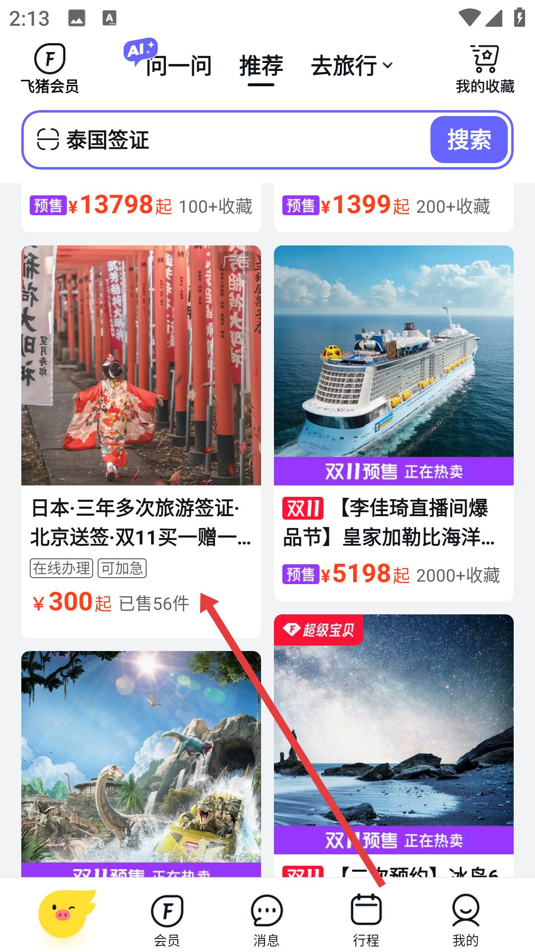 1、打開飛豬旅行APP,進入主界面,瀏覽推薦的旅游產品,找到日本三年多次旅游簽證相關商品,點擊進入該商品詳情頁面。