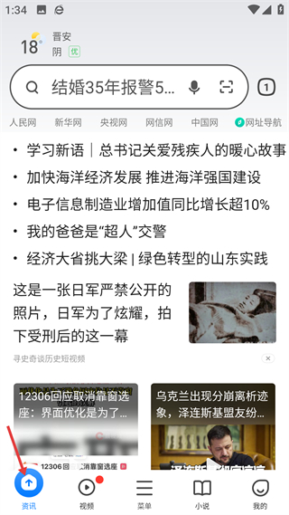 1、進入資訊頁面,可瀏覽時政、社會等各類資訊,支持搜索內容,還能通過網址導航訪問主流媒體平臺,獲取權威信息。