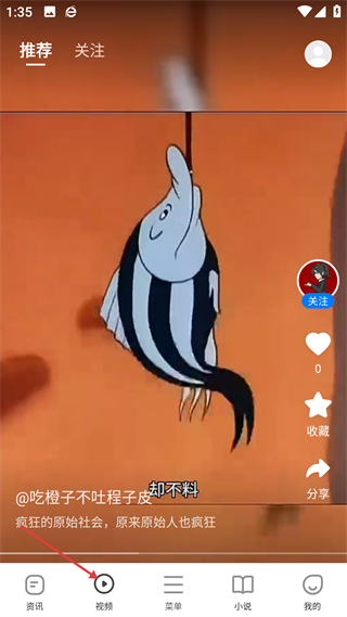 2、在視頻頁面,可觀看推薦的短視頻內容,支持關注創作者,還能對視頻進行點贊、收藏等互動操作,豐富視聽體驗。