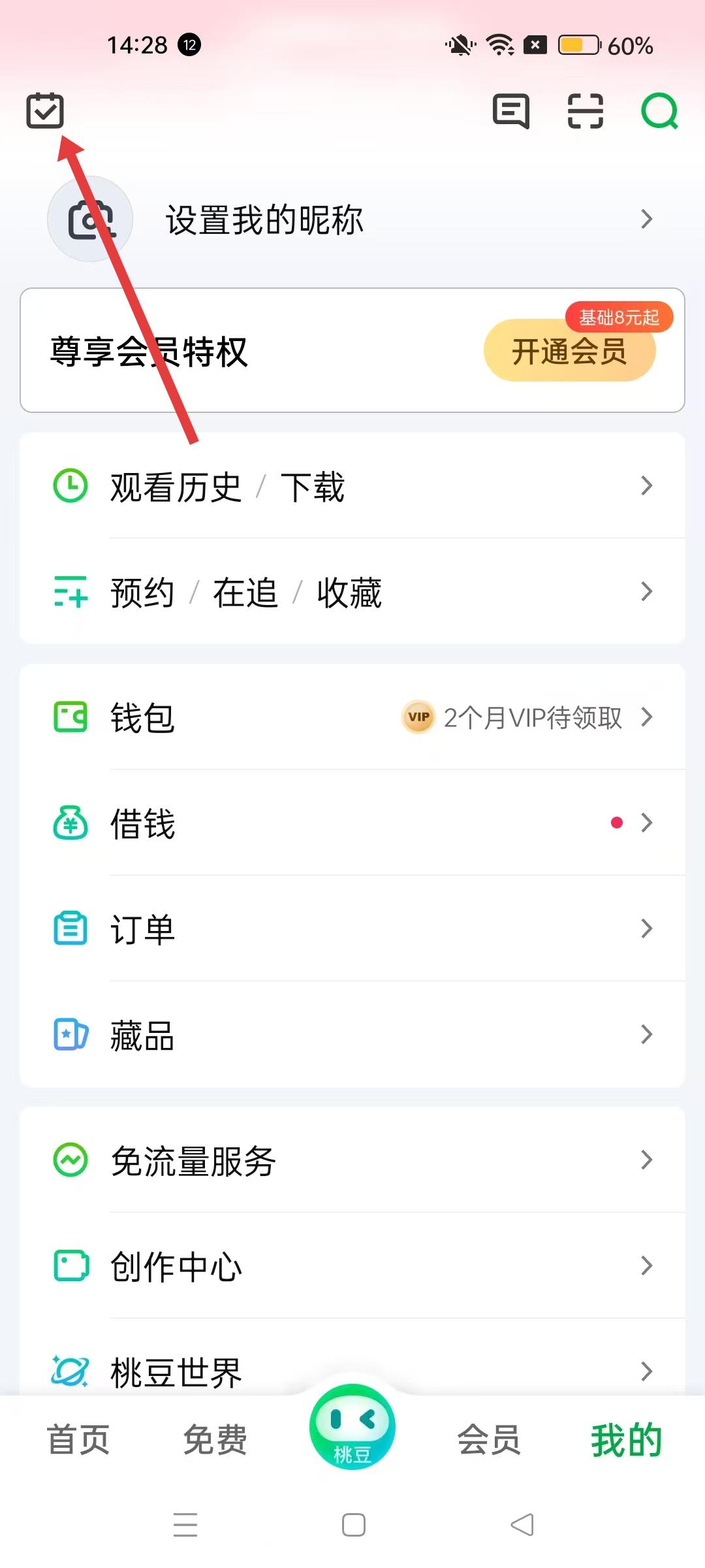 2、來到我的界面左上角找到帶對勾的任務圖標,點擊進入任務中心。