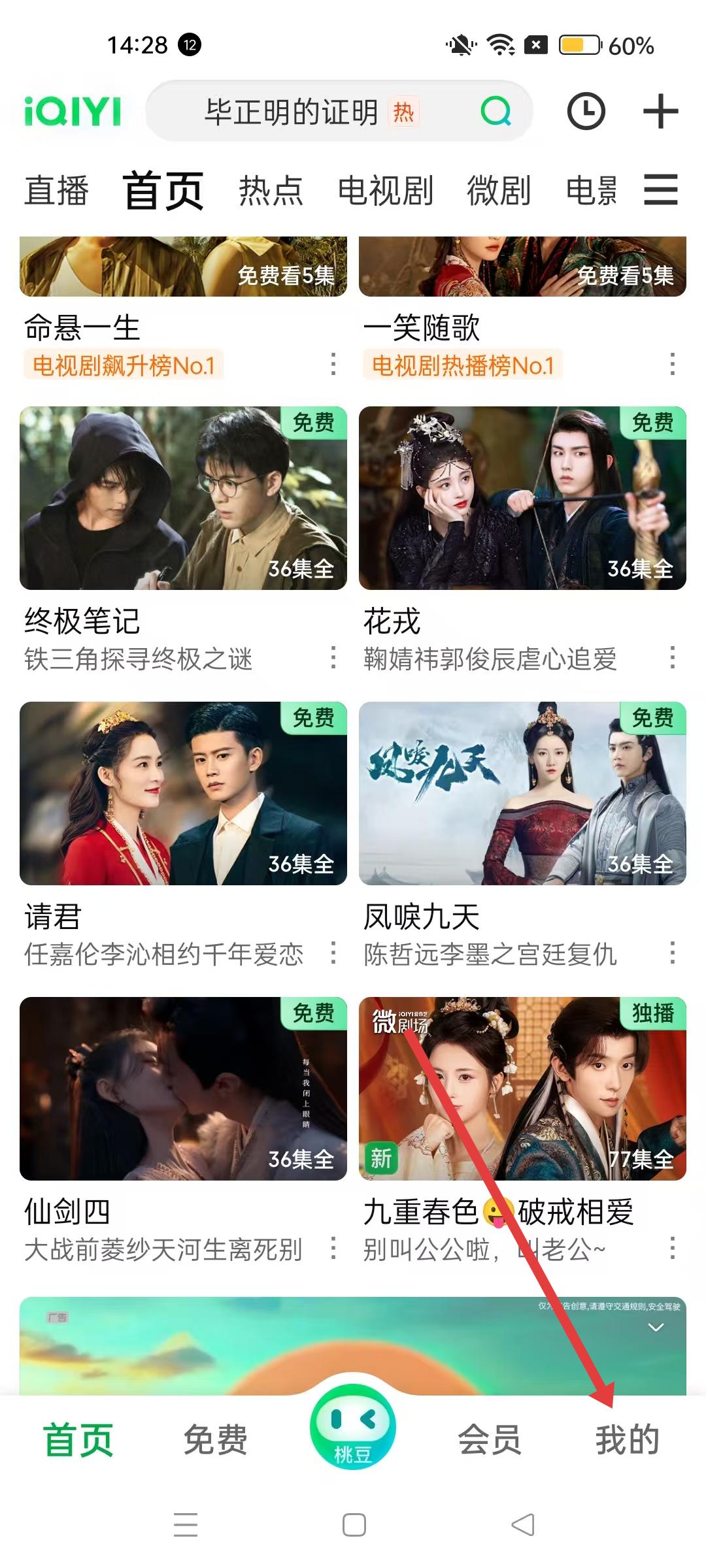 1、打開愛奇藝進入首頁,可看到各類熱播劇集推薦,點擊右下角我的進入個人界面。