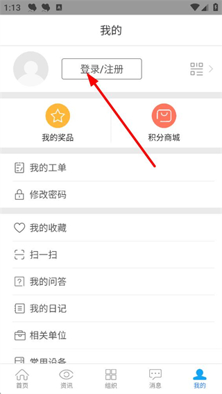 2、進入我的板塊,可點擊登錄、注冊,管理我的獎品、積分商城,查看我的工單、修改密碼等,管理個人賬號信息。