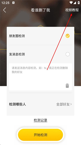 4、在檢測頁面點擊視頻教程選項,查看檢測刪除非好友的操作視頻,學習對應的功能使用方法。