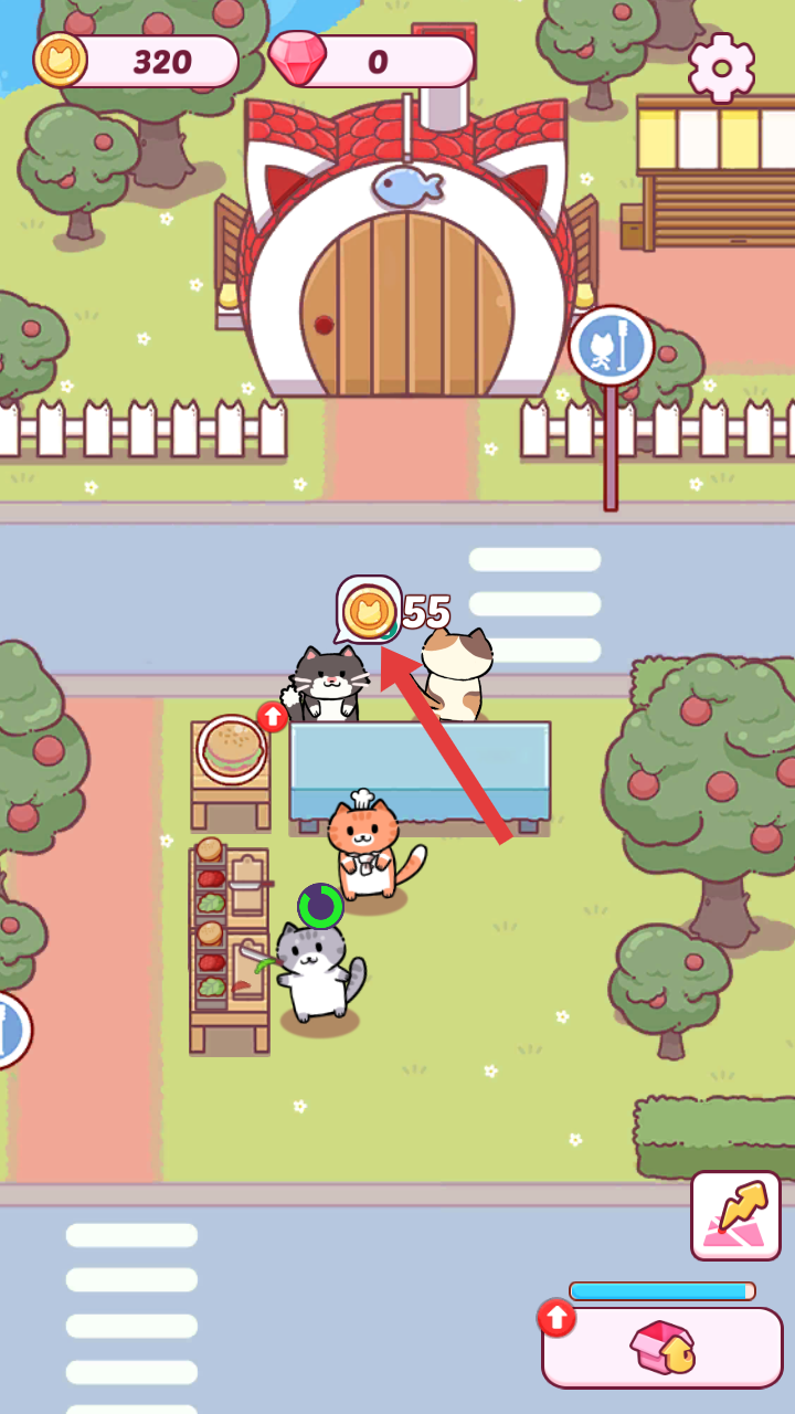 2、貓咪員工管理:根據性格安排合適崗位,慵懶貓適合收銀,活潑貓適合迎客。注意補充貓零食。