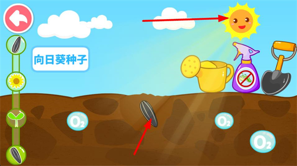 4、完成播種后,借助太陽的光照等條件,等待種子生長,同時可觀察界面上的生長進度提示,了解種植的后續變化。