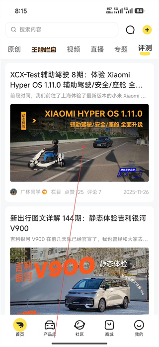 2、在產品頁面的評測分類下,選擇XCXTest輔助駕駛8期的資訊,點擊進入該資訊的詳情頁面查看內容。