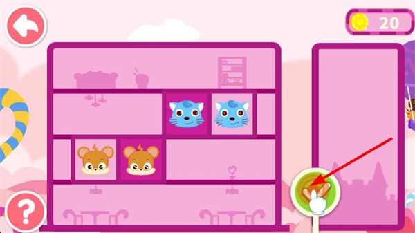 2、當架子上出現相同的萌物時,點擊界面下方的綠色牌,如正確分配房間就會獲得金幣,積累游戲內的資源。