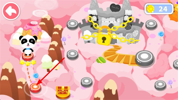 3、點擊場景里的關卡按鈕,讓角色朝著目標關卡方向前進,朝著被鎖住的城堡方向推進。