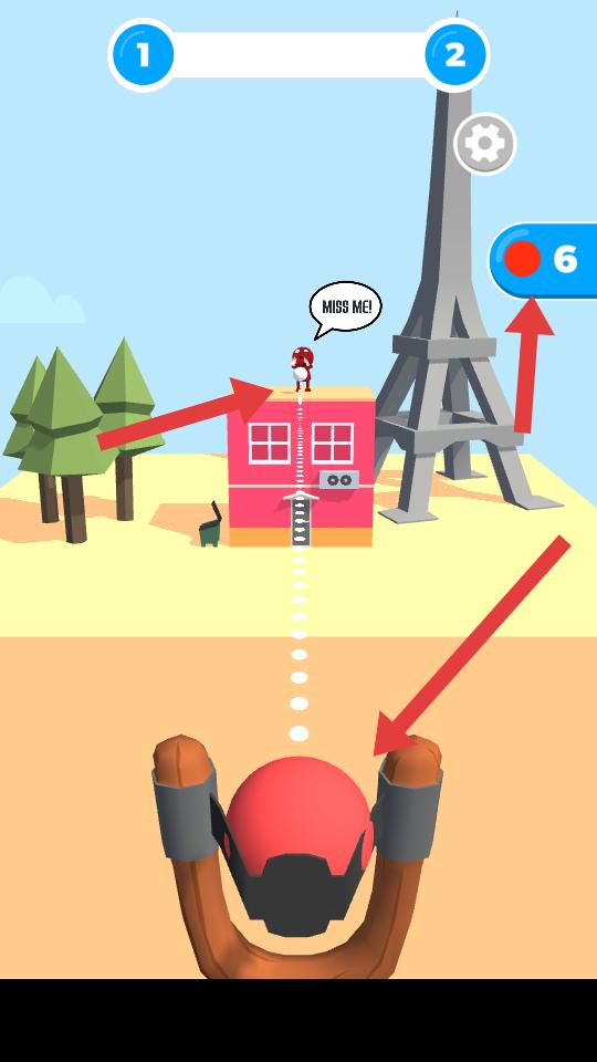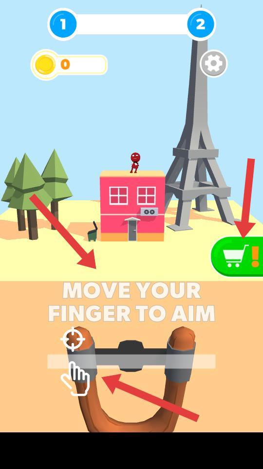 1、進入游戲,按照提示移動手指瞄準,利用彈弓準備發射,擊中場景里的目標,開啟射擊挑戰。