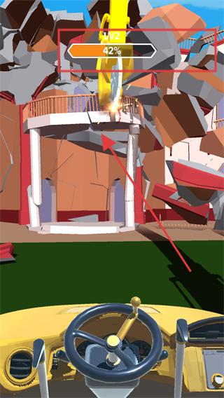 3、持續操控拆樓設備,對建筑進行拆除,注意觀察上方的進度條,了解拆除的進度,不斷破壞建筑,直到進度條達到一定程度。