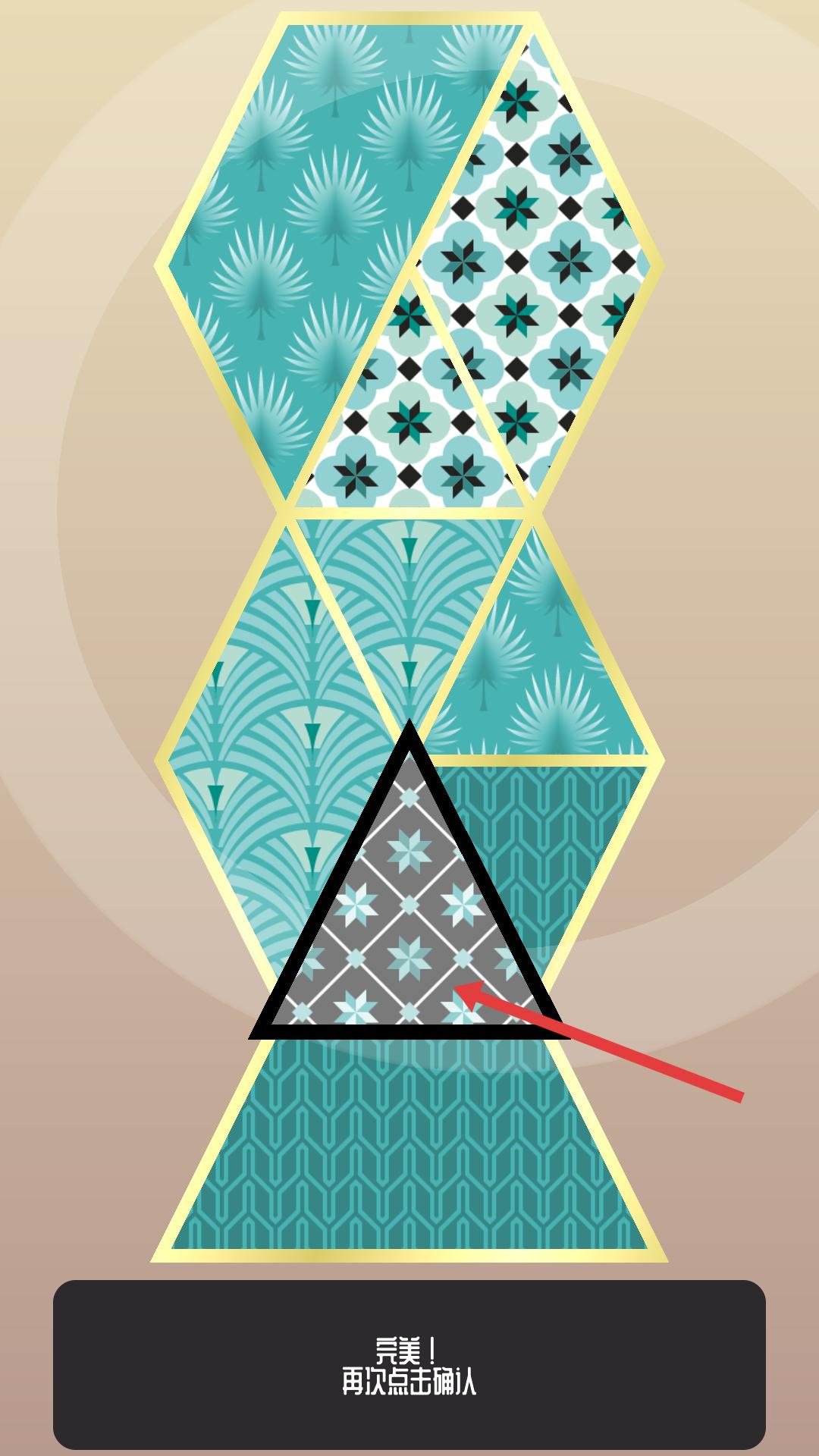 3、點擊后提示完美再次點擊確認,再次點擊該三角形,完成這一步操作,推進游戲。