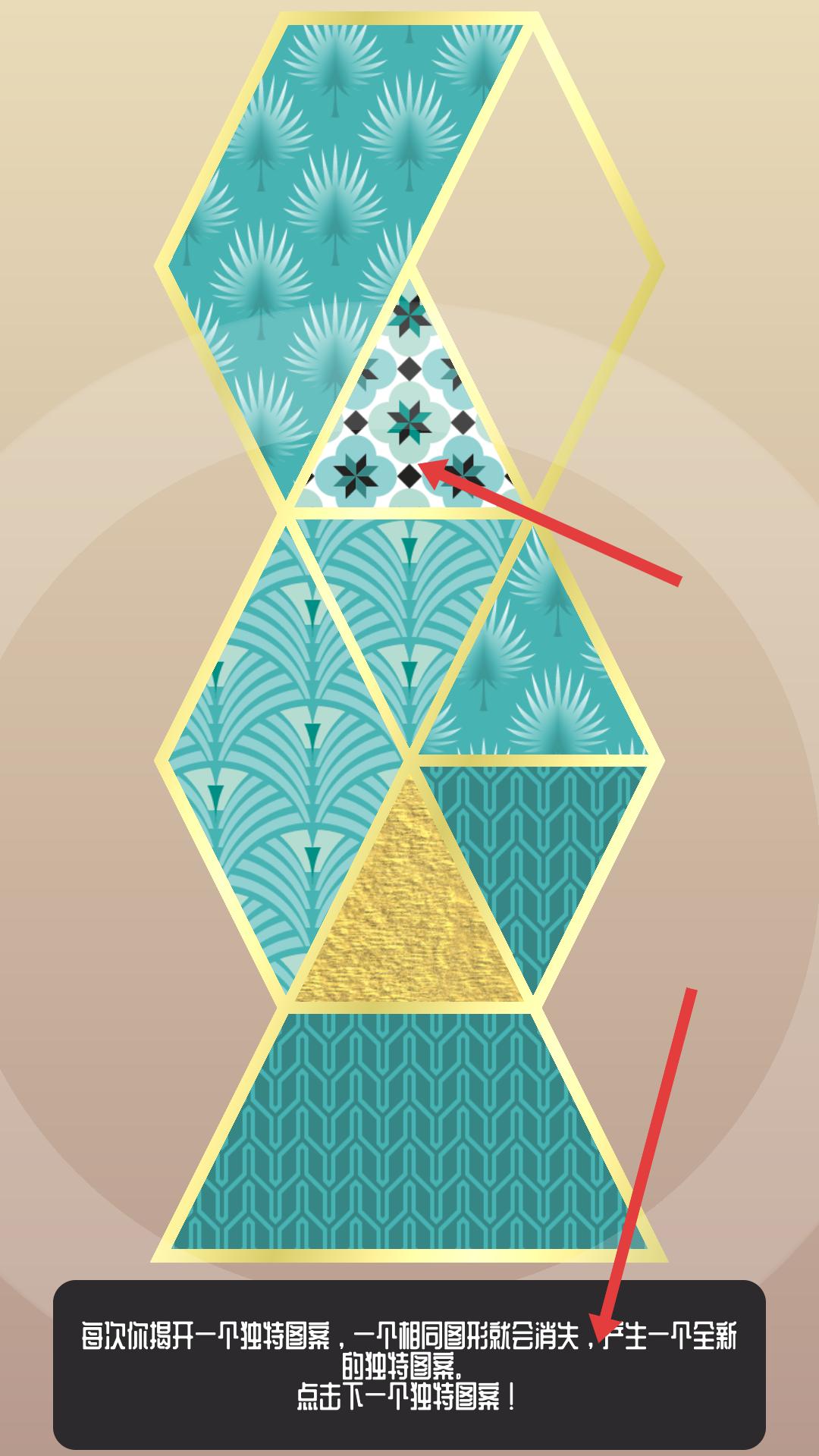 4、成功揭開獨特圖案后,相同圖形消失并產生新獨特圖案,繼續觀察,點擊下一個帶有獨特圖案的圖形。