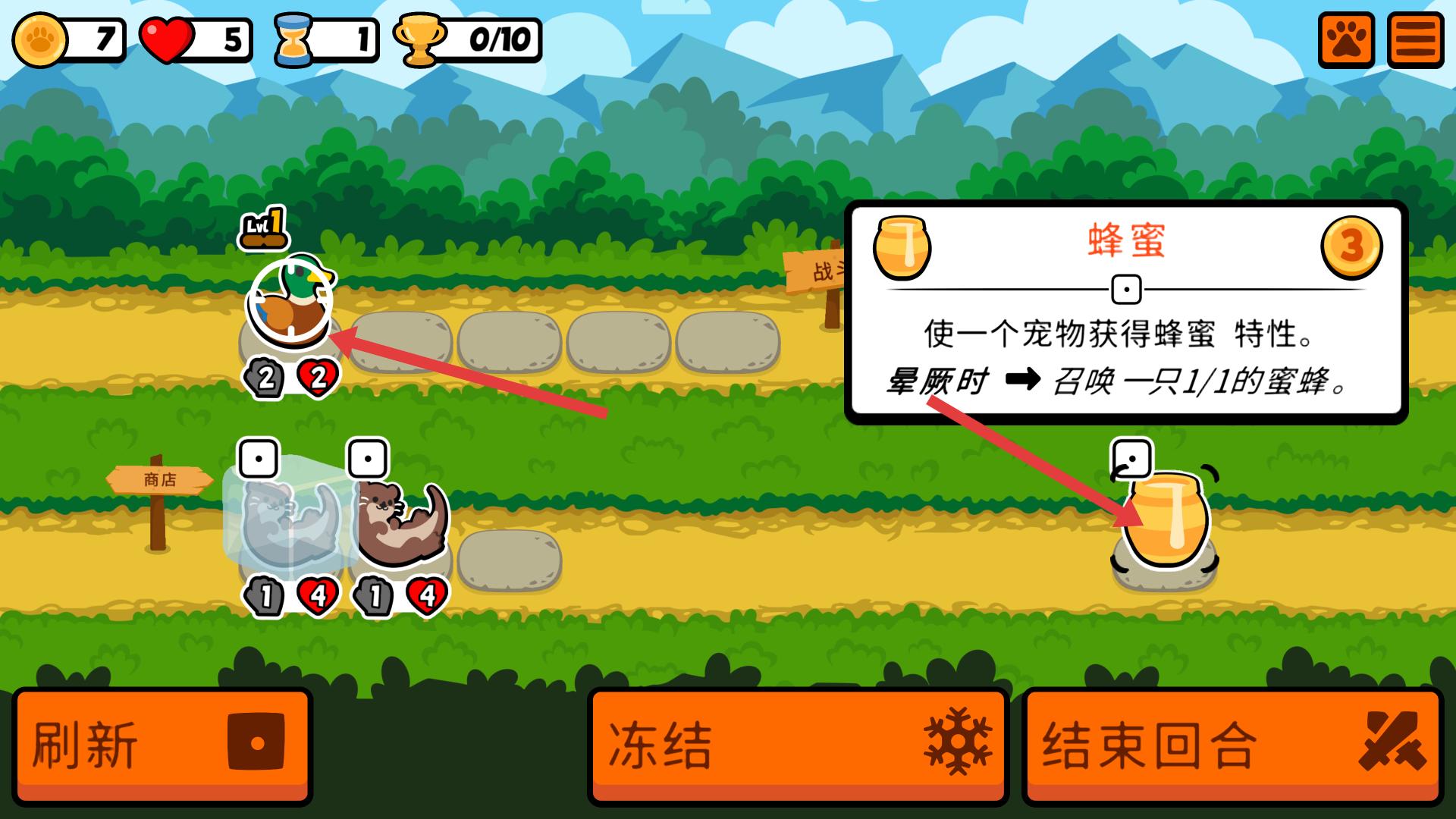 3、蜂蜜可使一個寵物獲得蜂蜜特性,寵物暈厥時能召喚一只蜜蜂,合理利用蜂蜜,可增強寵物戰斗能力。
