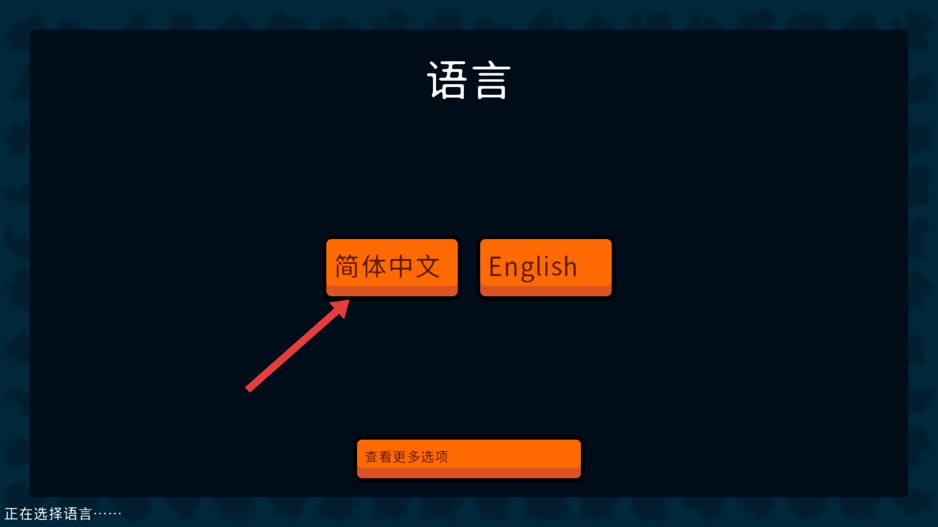 1、游戲語言選擇界面,有簡體中文和English兩個選項,點擊簡體中文,可將游戲語言設置為簡體中文,方便后續操作與理解。