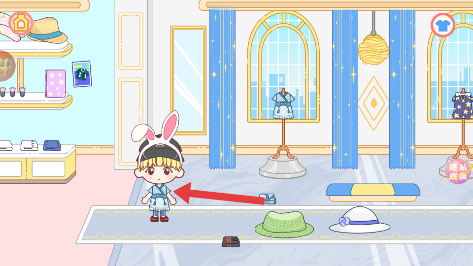 2、來到服裝店場景,里面有各種服飾和配飾,可選擇喜歡的服裝,為角色進行穿搭,打造獨特造型。