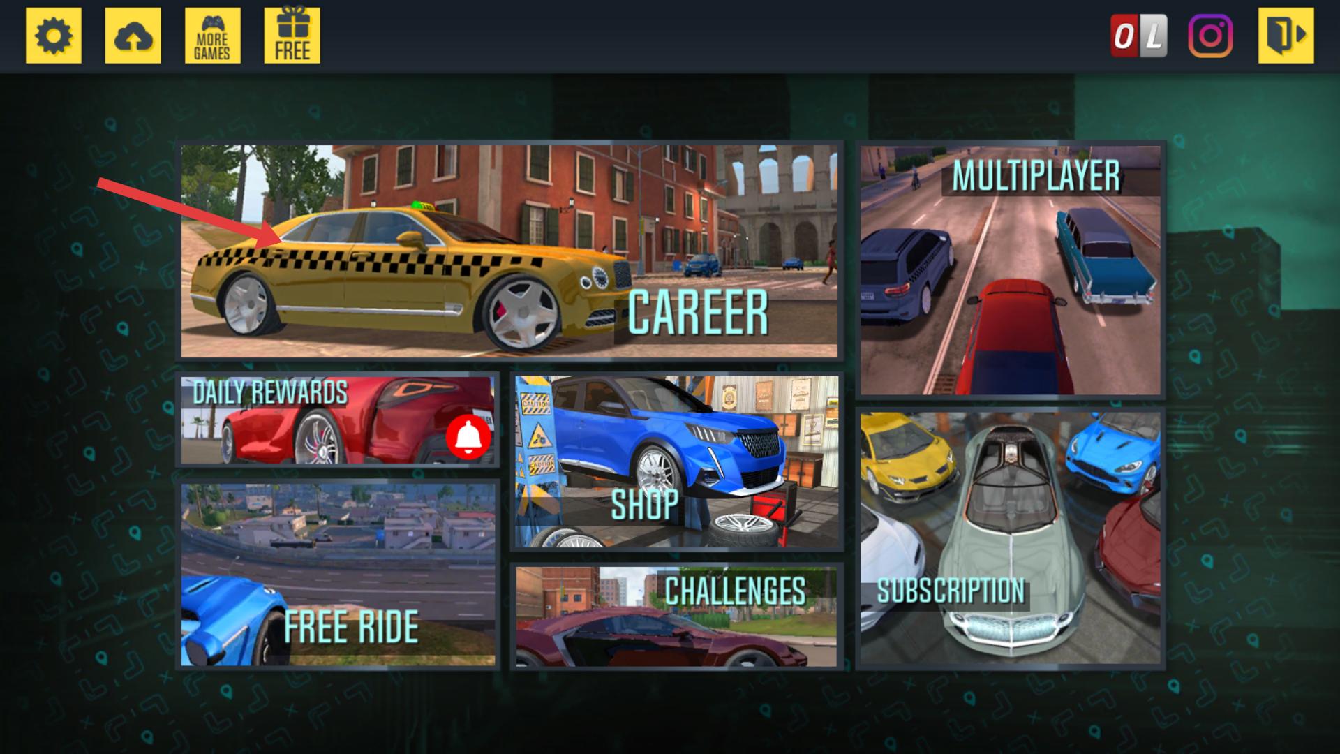 1、點擊帶有出租車圖案且標注【CAREER】的區域,進入生涯模式,開啟出租車駕駛的職業挑戰之旅。