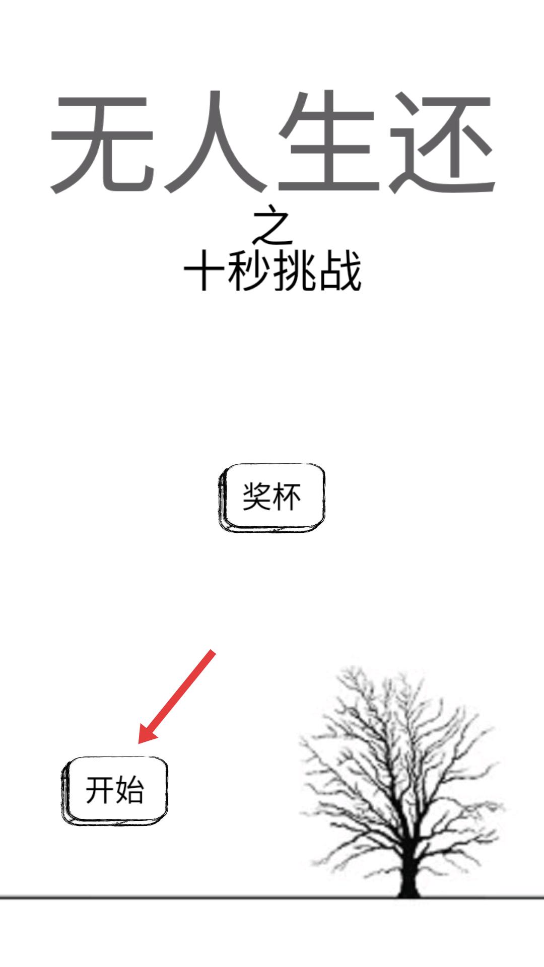 1、界面顯示無人生還之十秒挑戰,有開始和獎杯按鈕,點擊開始,進入十秒挑戰關卡,開啟游戲。