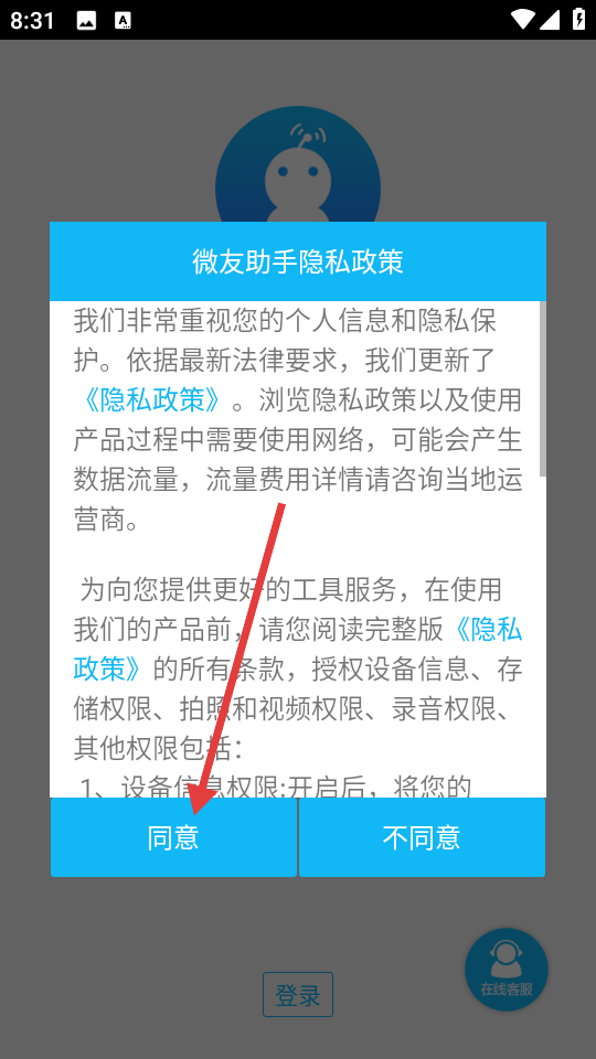 1、首次打開APP會彈出用戶協議及隱私政策界面,需仔細閱讀后點擊同意才能繼續使用APP,這一步是為了確保用戶了解并同意平臺使用個人信息的規則。