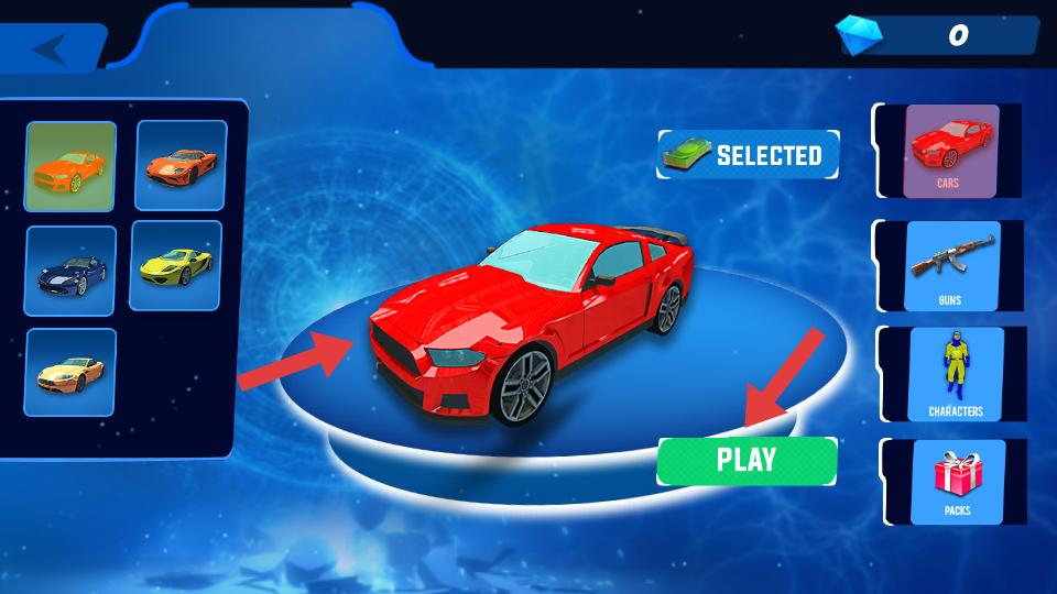 2、進入選擇界面,可挑選不同的汽車,選好后點擊PLAY,就能帶著所選汽車進入游戲場景。