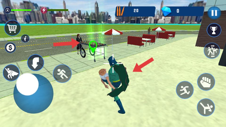 3、進入游戲后,操控角色在城市街道行動,界面左側有各種功能按鈕,可借助它們讓角色移動,去接近目標對象。