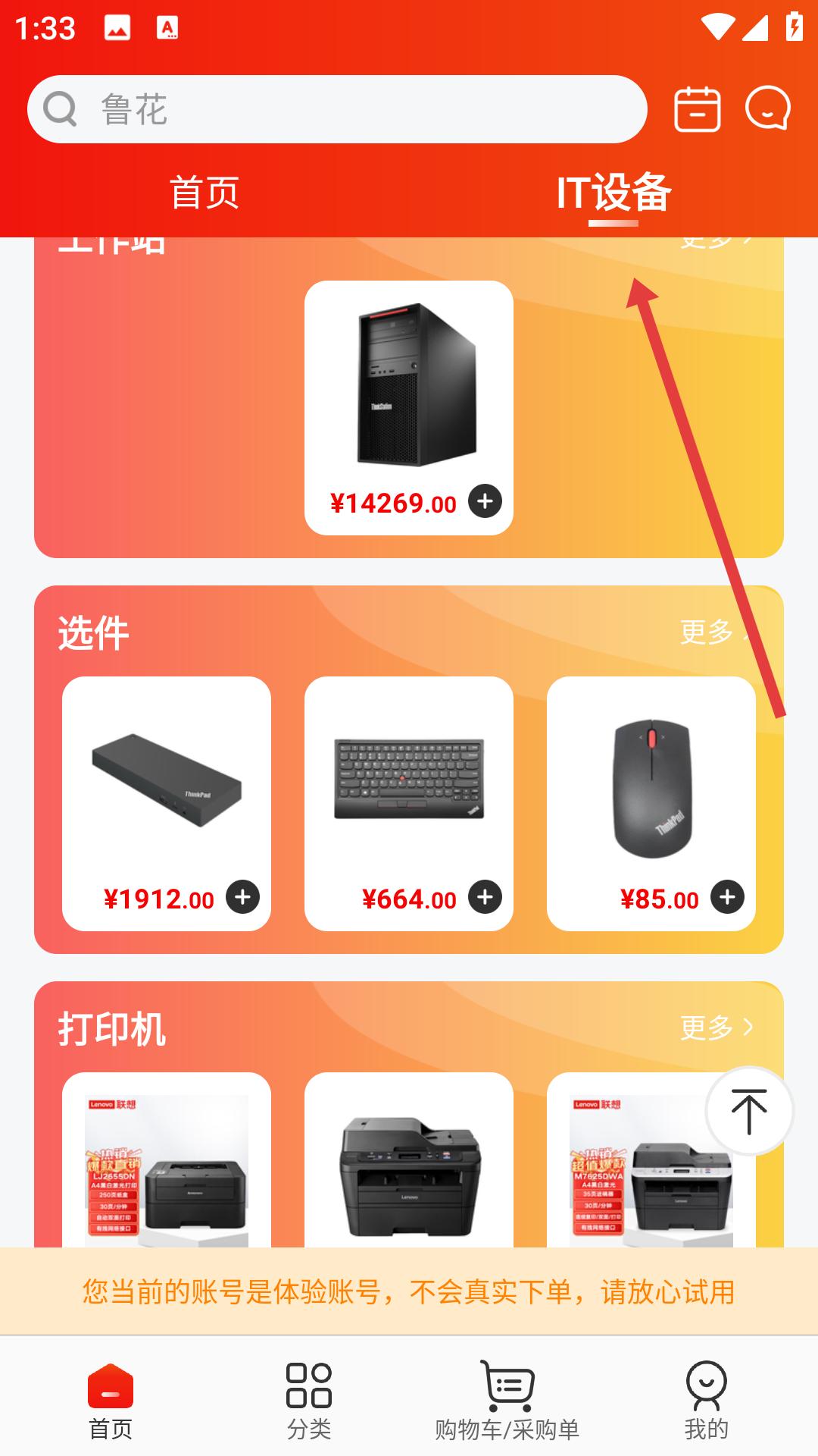 2、在首頁上方點擊IT設備分類,進入IT設備商品展示頁面,看到工作站、選件、打印機等不同類別,可根據采購需求選擇相應類別。