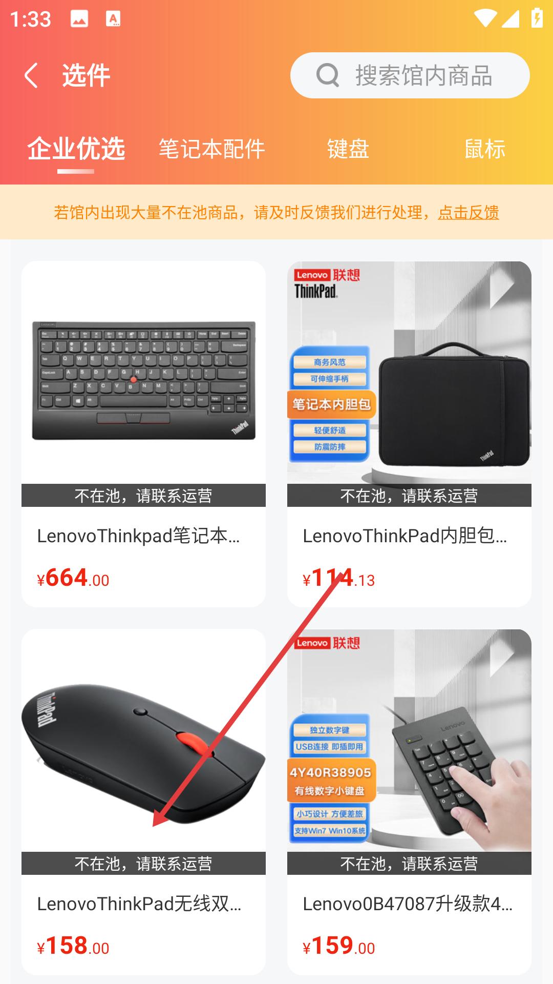 3、進入選件類別頁面看到企業優選、筆記本配件等分類,還有各類選件商品展示,挑選感興趣的選件商品,比如鼠標等,點擊進入商品詳情頁面。