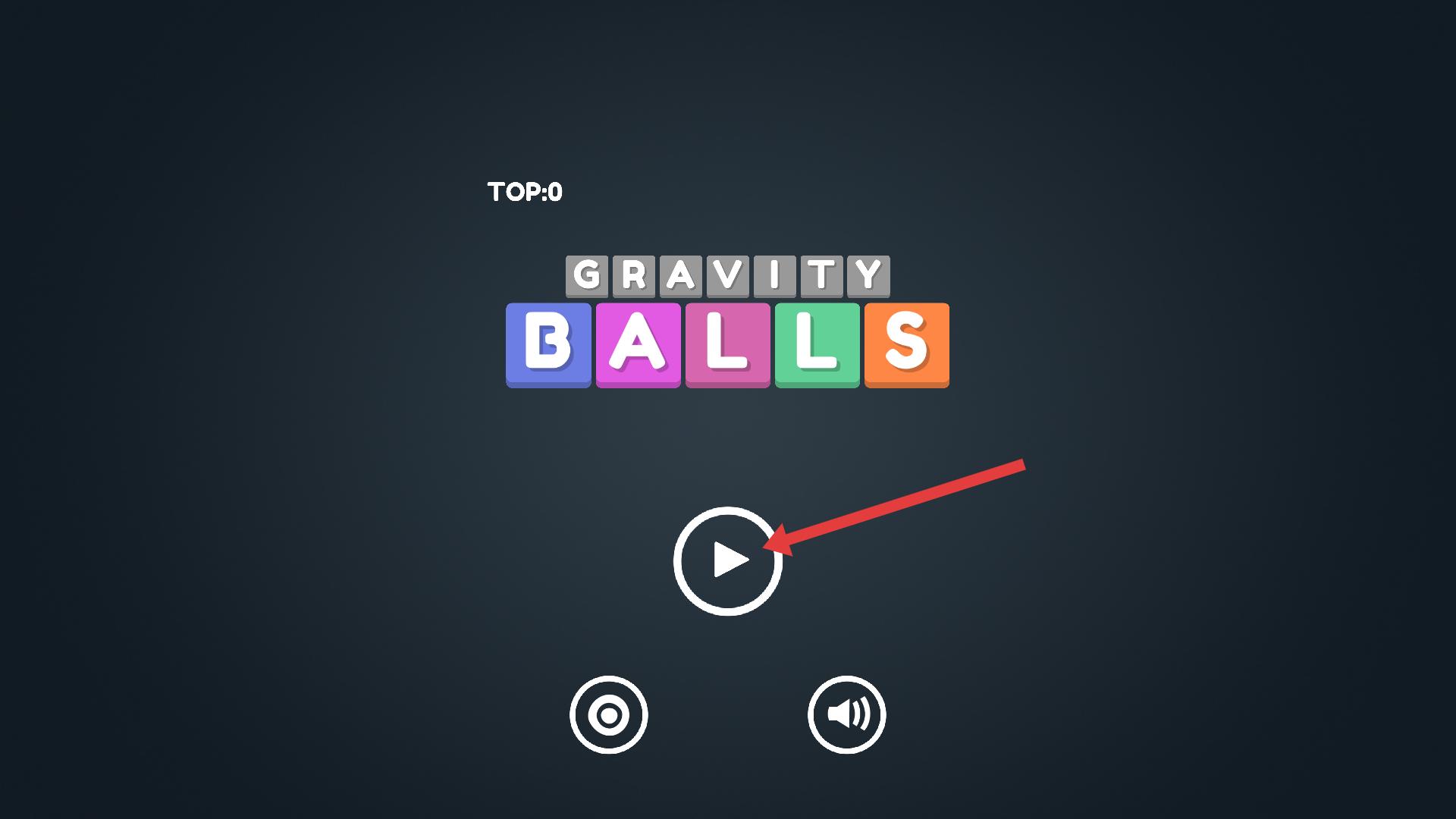 1、界面顯示游戲標題,有播放按鈕,點擊該按鈕進入游戲,開啟重力小球挑戰。