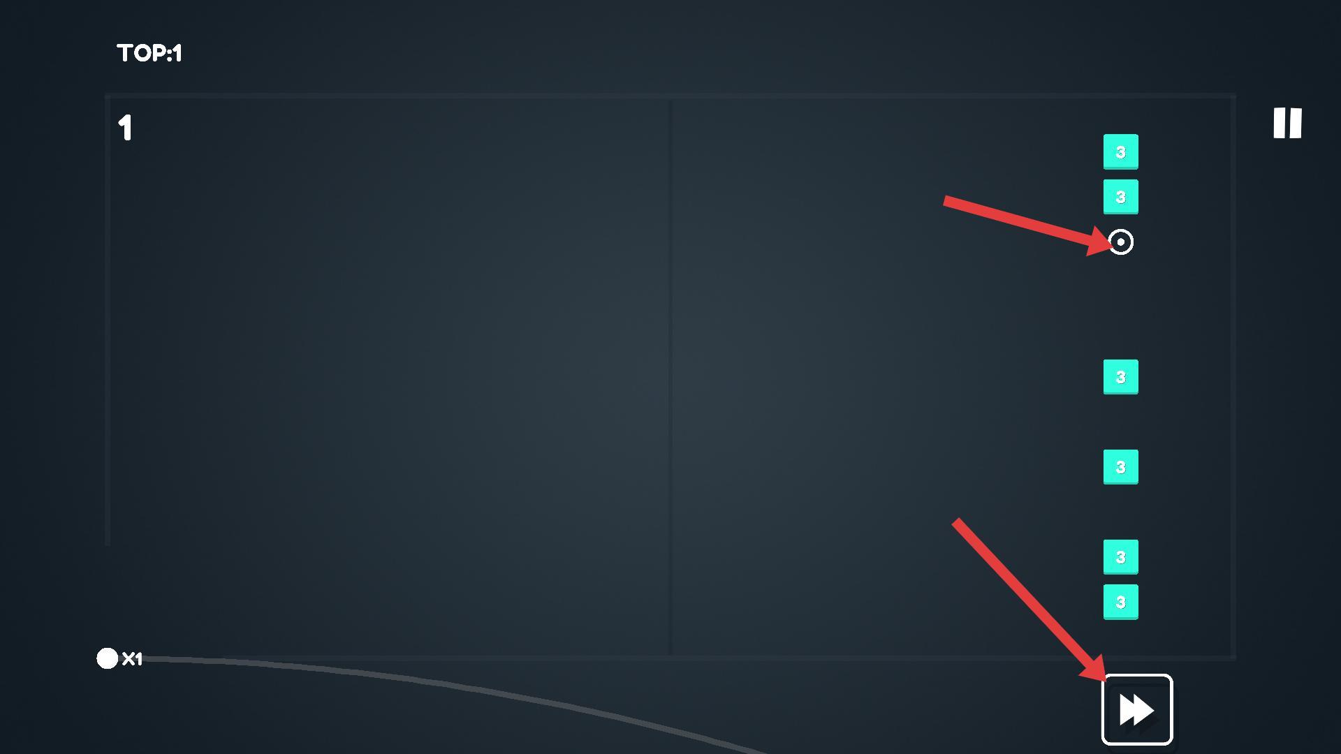 2、進入關卡右側有標著3的方塊,下方有加速按鈕,點擊加速按鈕,讓小球快速移動,撞擊方塊,獲取分數。
