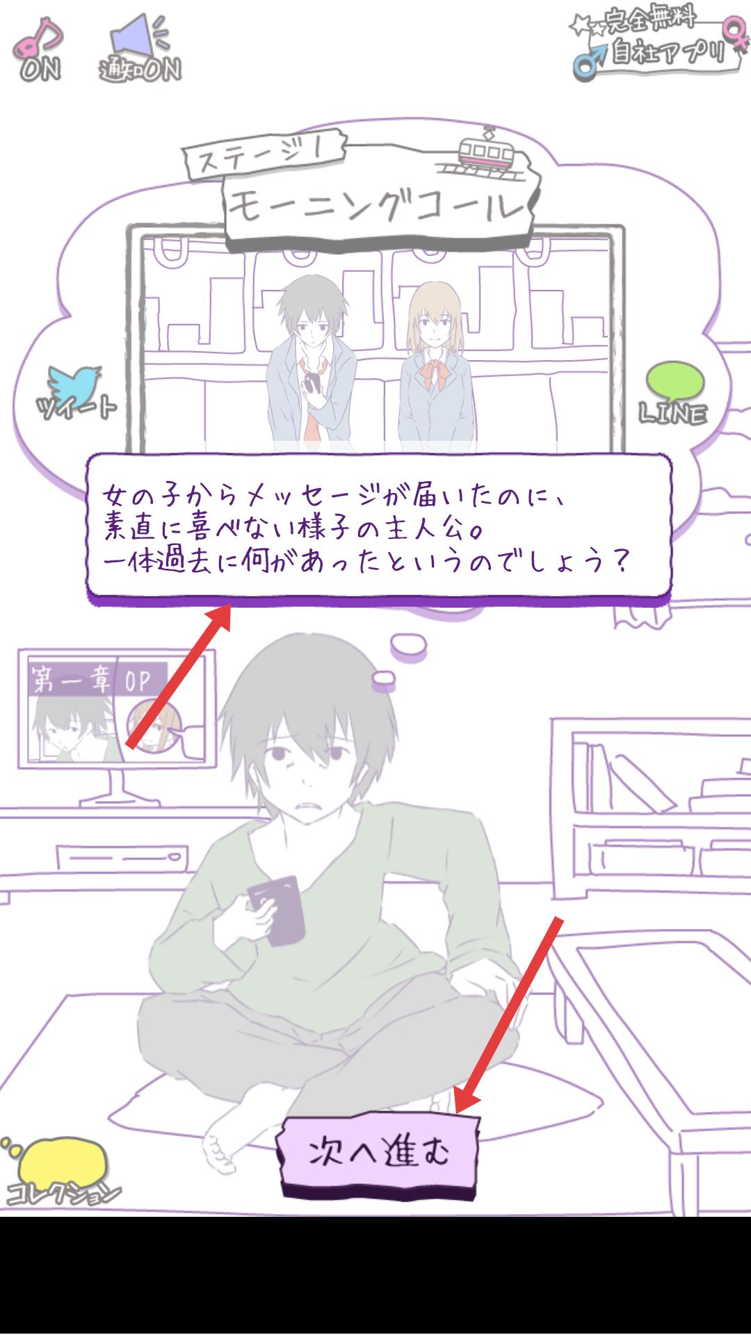 1、界面顯示場景1晨間通勤,主角收到女生消息卻不開心,點擊下一步,推進劇情,了解主角過去的故事。