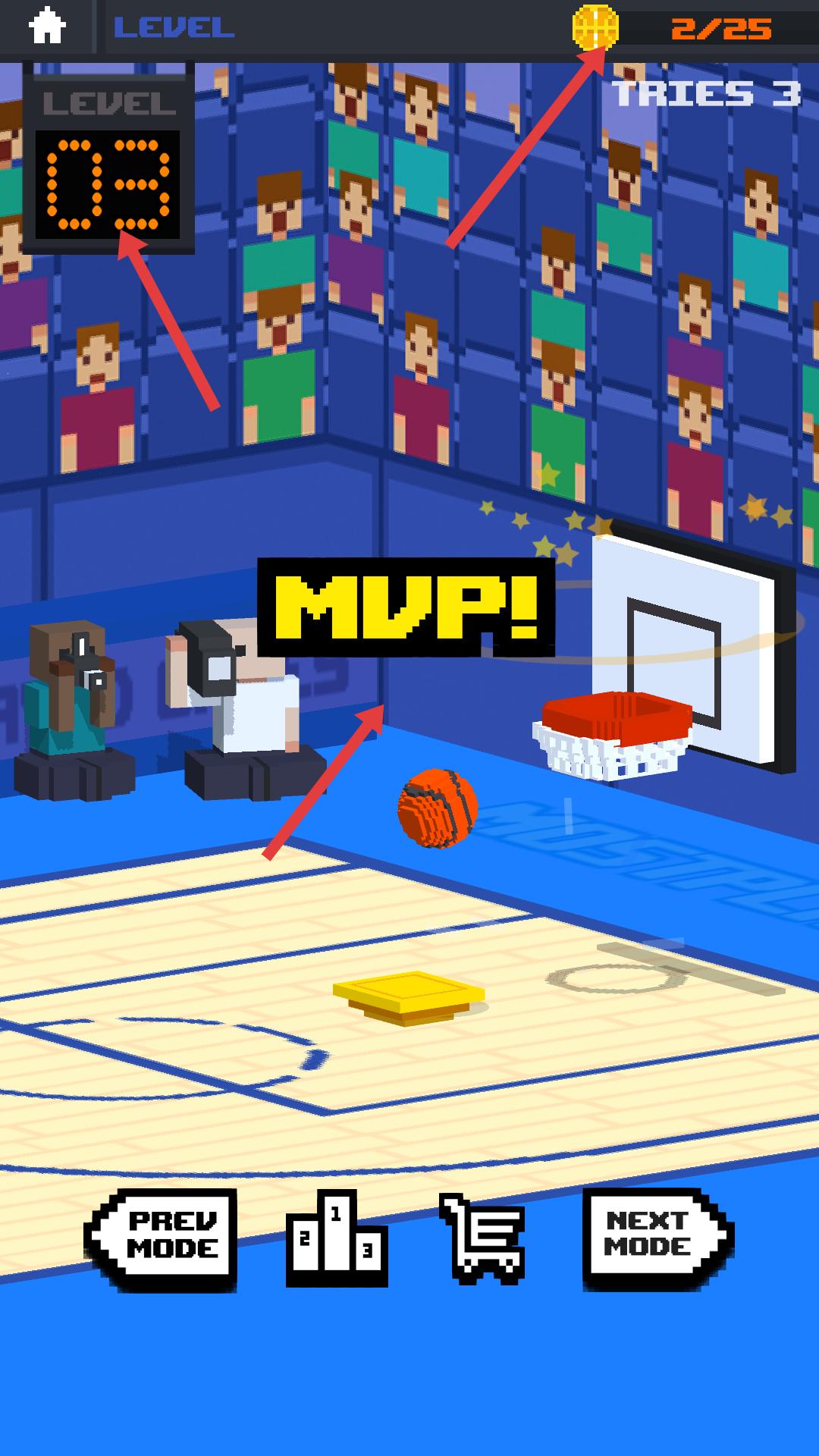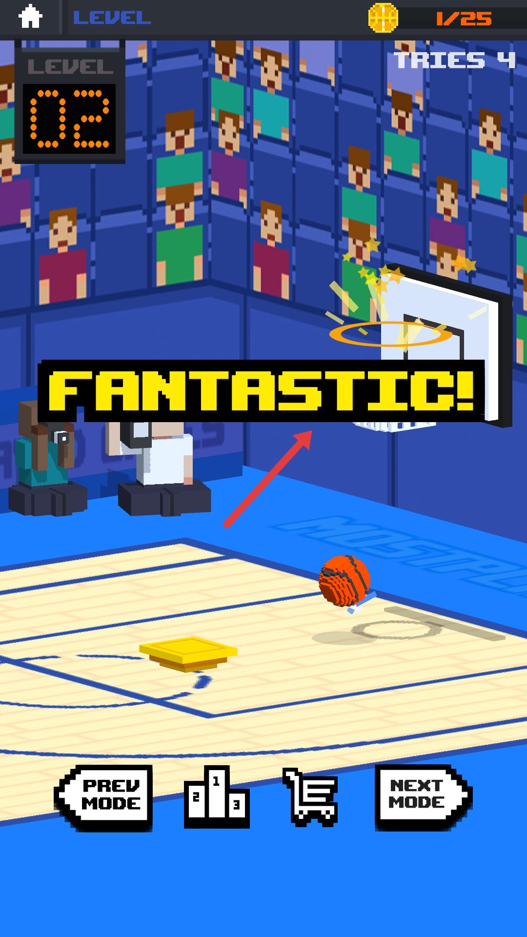 3、投籃成功后會進入下一關,繼續按照按住并釋放投籃的方式,調整好力度和角度投進籃球,推進關卡。