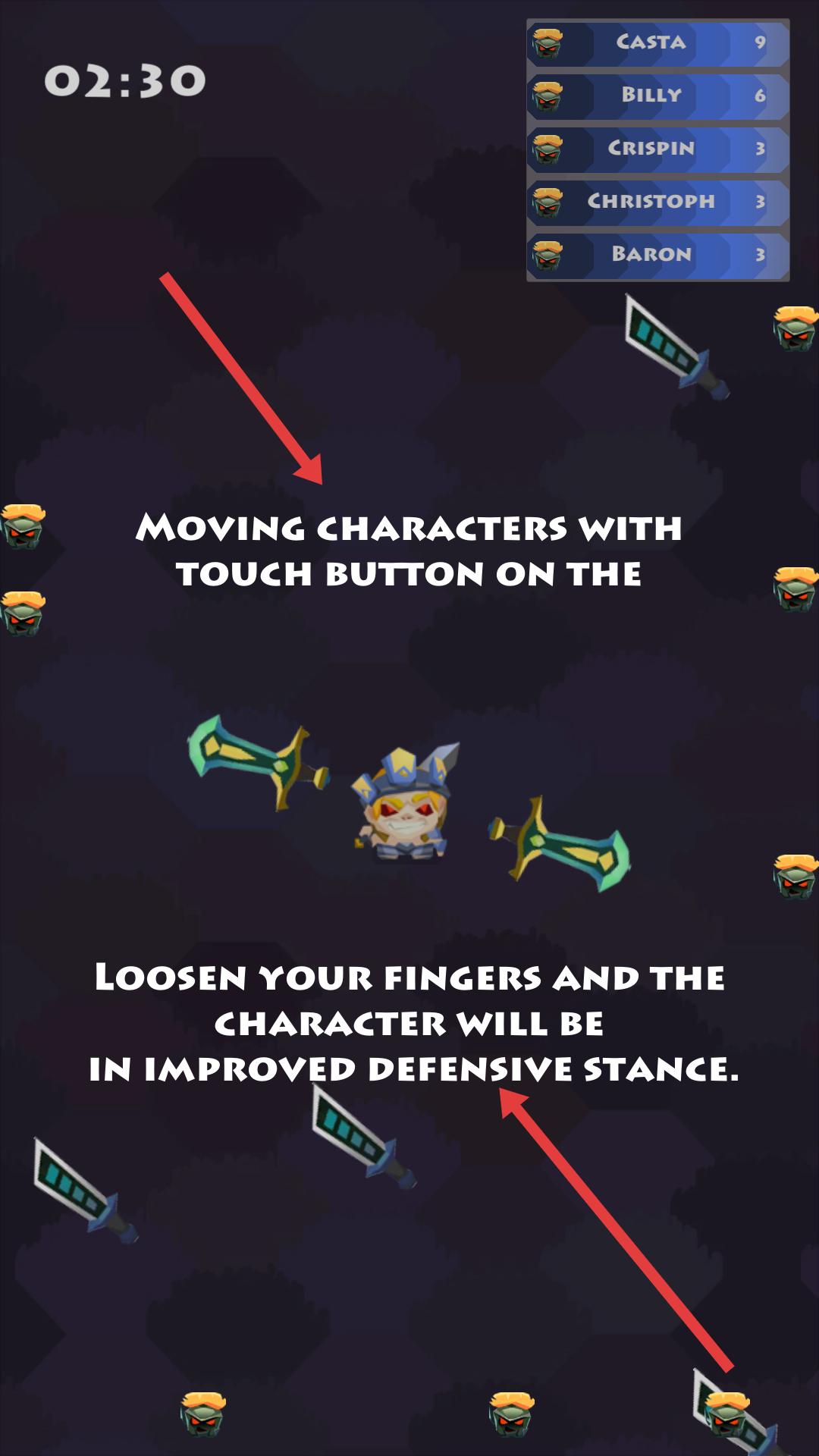 2、游戲提示通過觸摸按鈕移動角色,松開手指角色會進入強化防御姿態,按照提示操作,靈活移動角色并切換防御狀態。