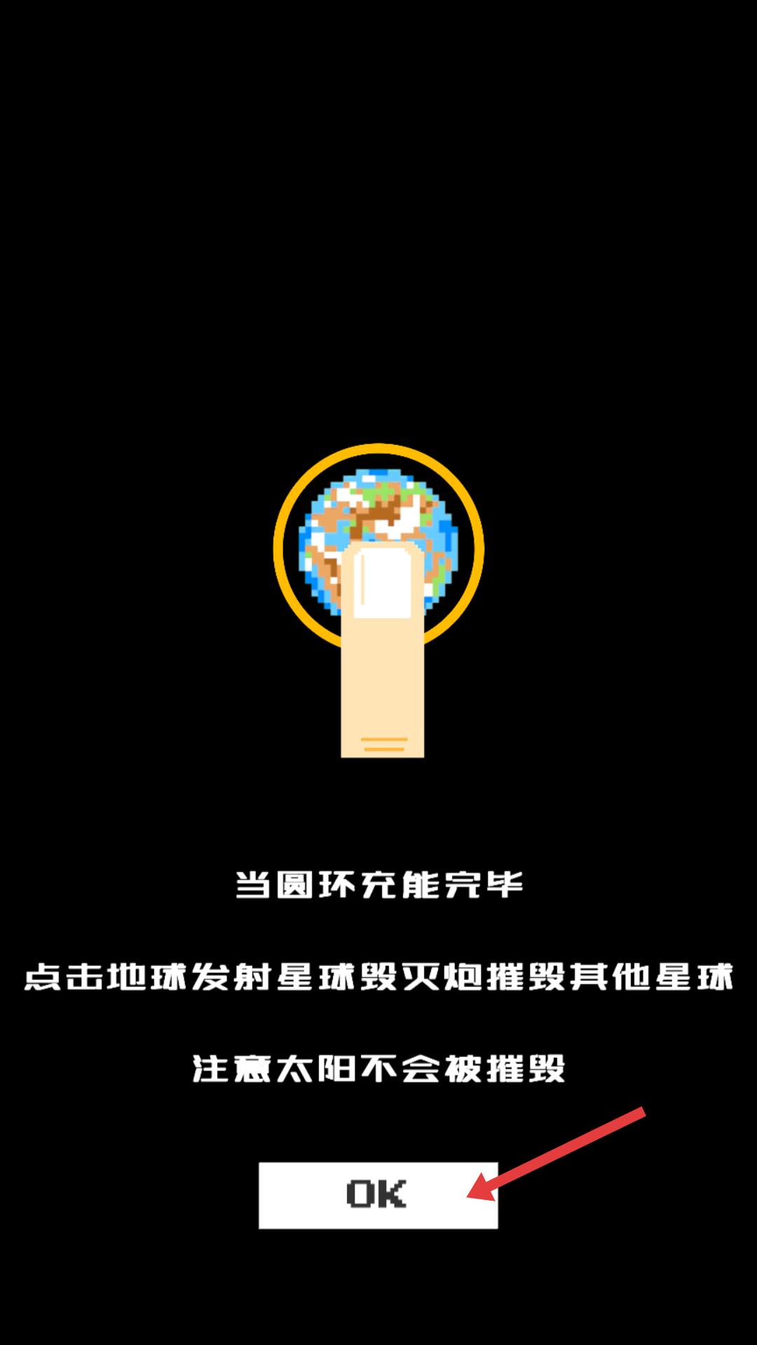 3、當地球周圍圓環充能完畢,點擊地球發射星球毀滅炮摧毀其他星球,注意太陽不會被摧毀,利用此技能清除障礙。