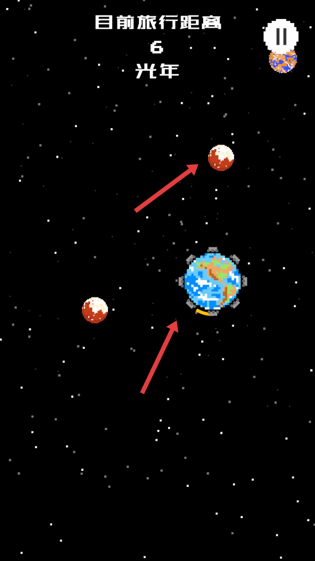 4、在太空旅行持續操控地球躲避星球,適時使用星球毀滅炮,不斷前行提升旅行距離,探索更廣闊的宇宙。