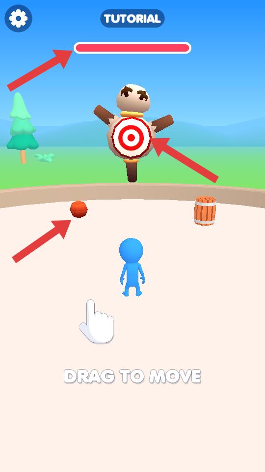 2、游戲有TUTORIAL引導,能看到目標,球體等元素,按照DRAG TO MOVE提示,拖動來移動角色,準備進行投擲。