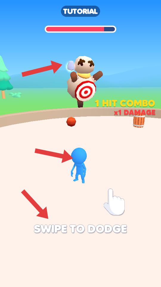 3、在與目標互動時,要留意目標的動作,按照SWIPE TO DODGE提示,滑動來躲避目標的攻擊,同時尋找投擲機會。