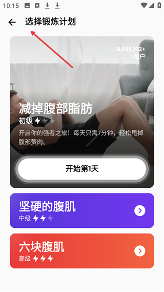 3、鍛煉計劃選擇板塊有從初級到高級的腹部鍛煉計劃,如減掉腹部脂肪、練出六塊腹肌等,滿足不同健身階段需求。