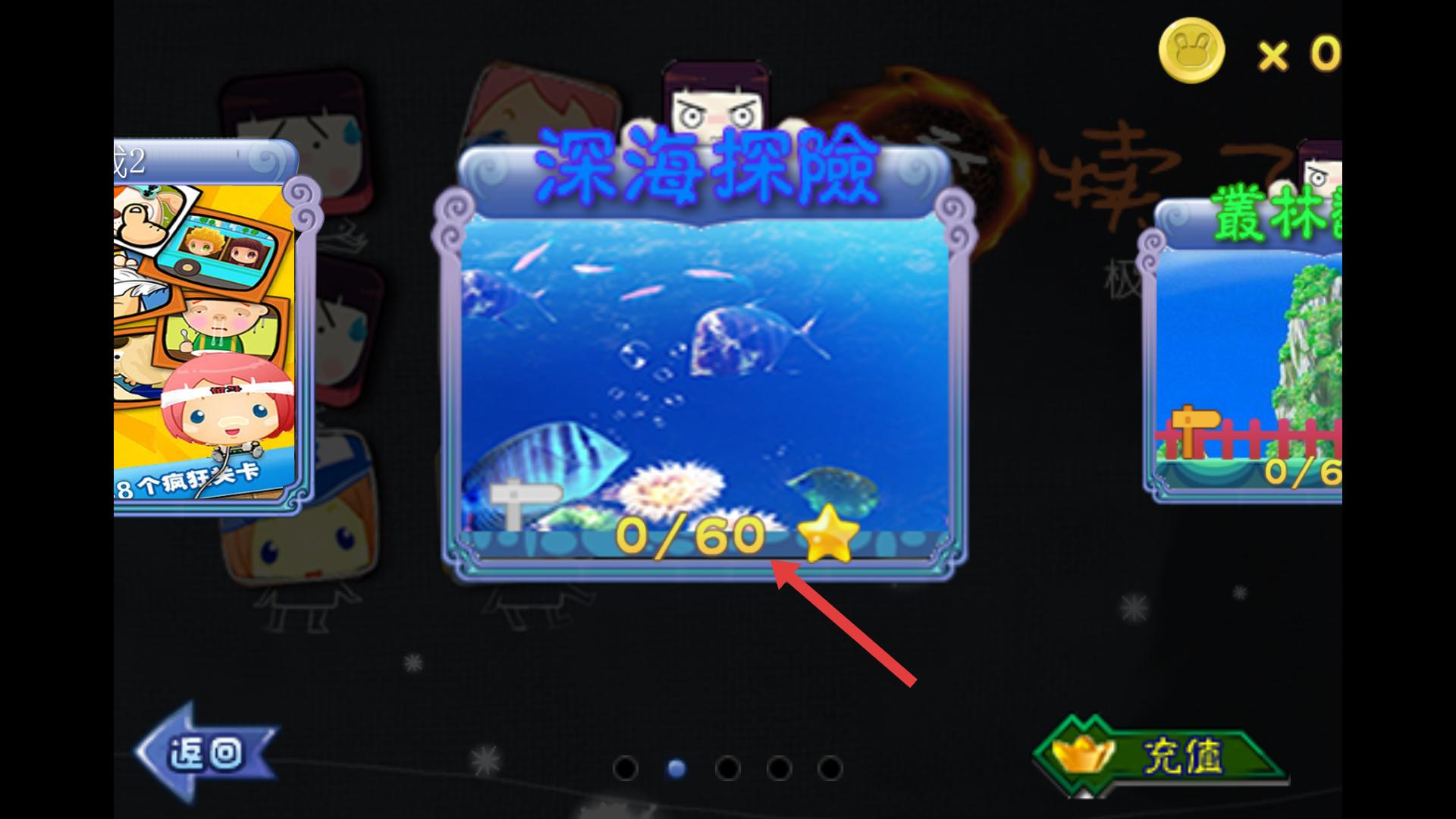 2、進入深海探險模式,界面顯示需收集60個目標物品,開始在深海場景中探索,收集對應的物品。
