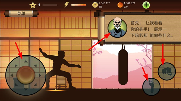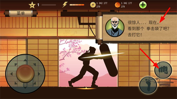 3、按照師父指示,操控角色攻擊拳擊袋,練習攻擊技能,提升戰斗操作的熟練度,推進修行進度。