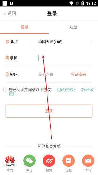 1、打開軟件進入登錄頁面,選擇中國大陸地區,填寫手機號碼和密碼,勾選協議后點擊登錄按鈕完成賬號登錄。