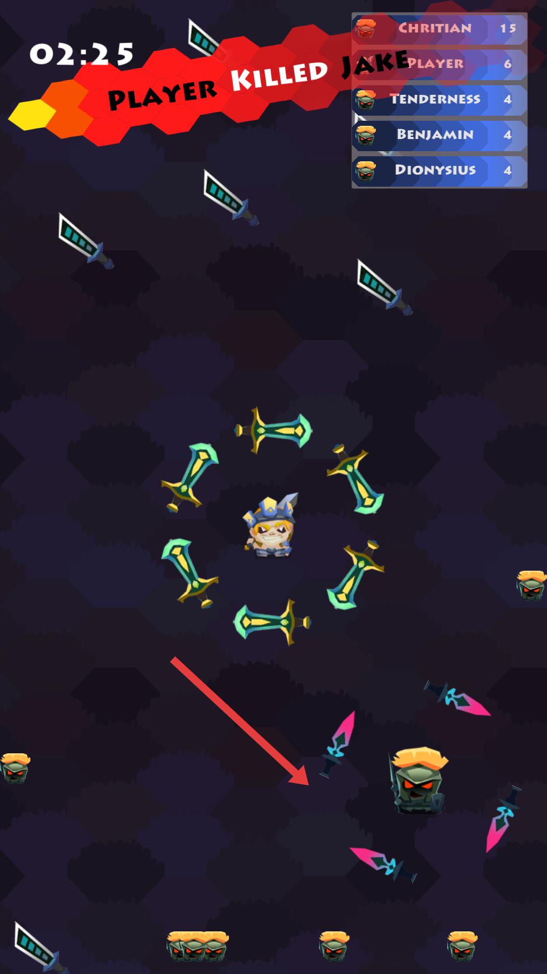 3、戰斗時角色周圍的劍可攻擊敵人,注意躲避敵人的武器,尋找時機消滅敵人,提升擊殺數,在排行榜中取得好名次。
