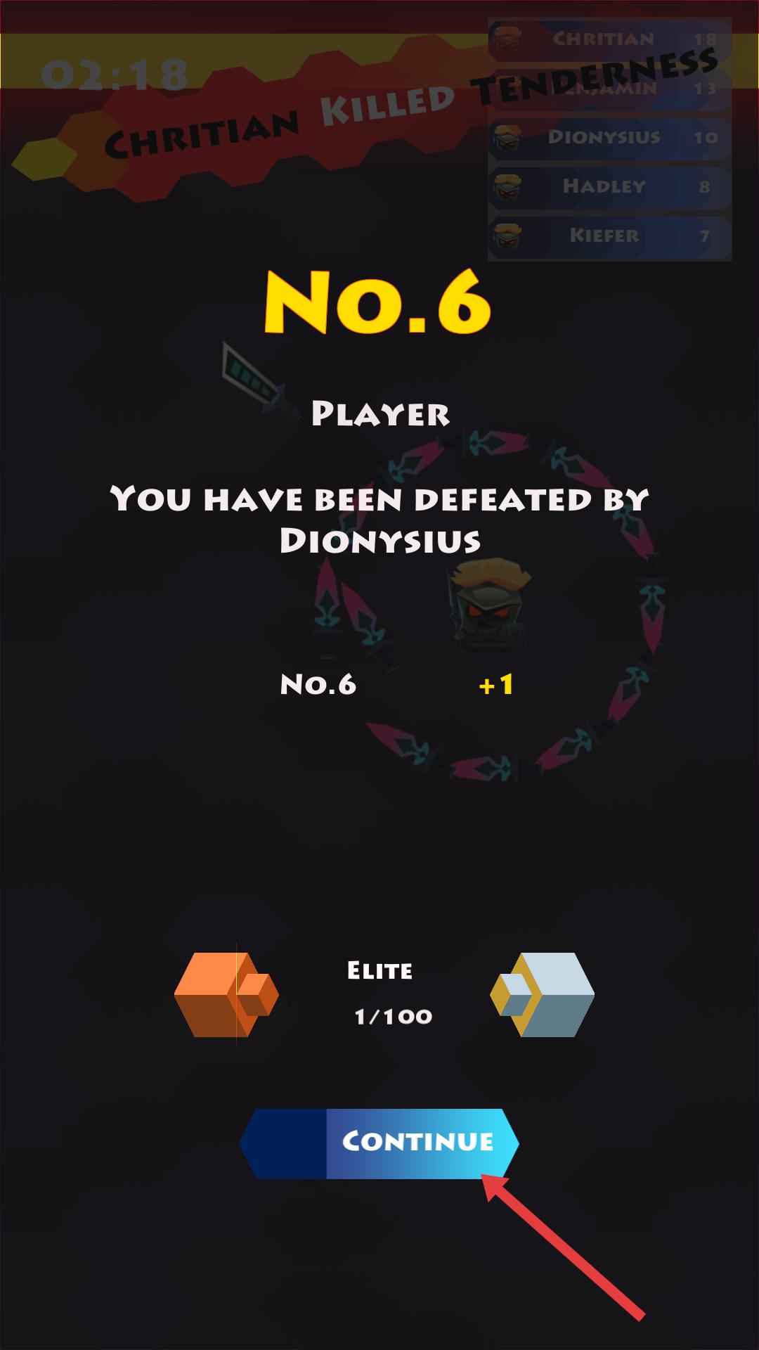 4、若被敵人擊敗,界面顯示失敗信息,點擊CONTINUE按鈕,繼續游戲總結失敗經驗,調整策略再次挑戰。