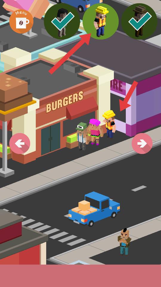 2、游戲中會出現不同人物形象,界面有左右箭頭可切換場景,需在場景里尋找目標人物,推進游戲。
