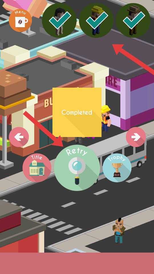 4、當所有目標人物都找到后,會顯示Completed,此時可選擇Retry重新游戲,或查看Trophy等,繼續體驗游戲。
