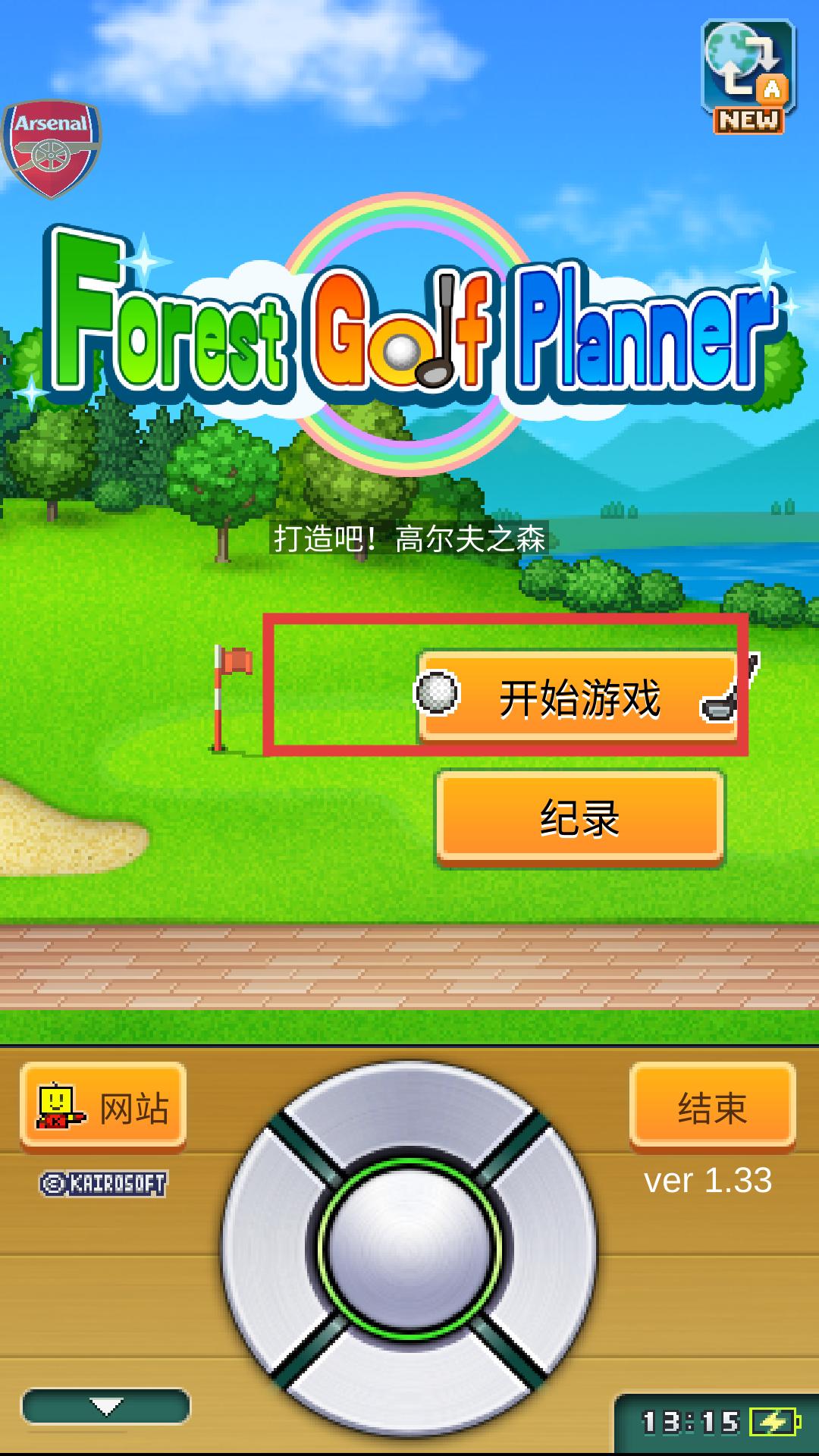 1、游戲主界面有開始游戲按鈕,點擊該按鈕,即可進入游戲場景,開啟打造高爾夫之森的游戲之旅。