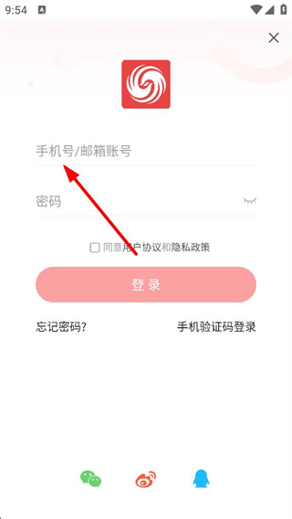 4、也可選擇賬號密碼登錄,輸入手機號或郵箱賬號、密碼,勾選用戶協議和隱私政策后點擊登錄,若忘記密碼可點擊忘記密碼找回。