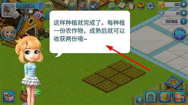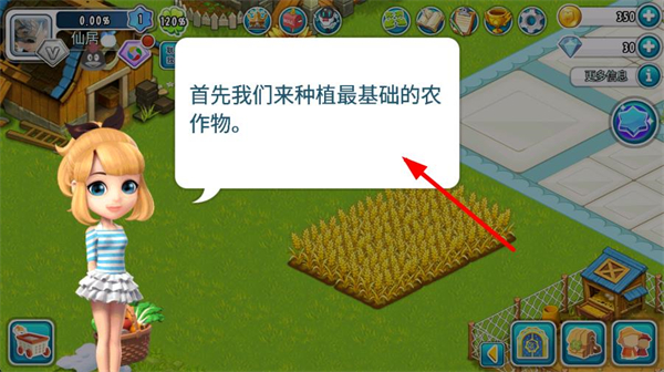 1、種植最基礎的農作物,按照提示開啟農場種植的第一步,體驗農場經營的樂趣。
