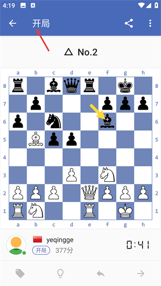 3、開局訓練頁呈現具體棋局題目,標注序號并配備計時,可在實戰棋局中練習開局階段的走法策略。
