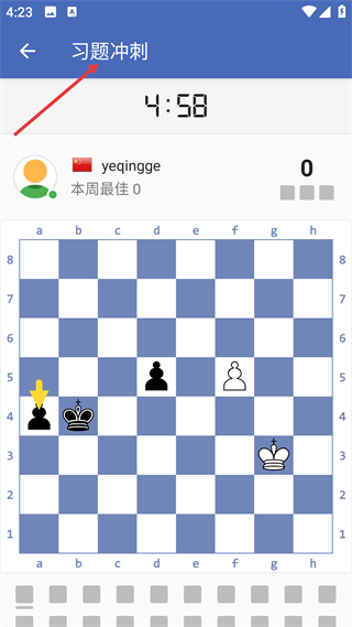 3、在完成對局訓練或對弈操作后,從功能關聯路徑,找到并點擊綜合訓練入口,進入國際象棋綜合訓練對局界面。