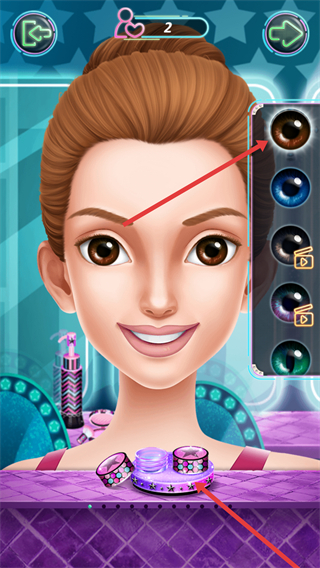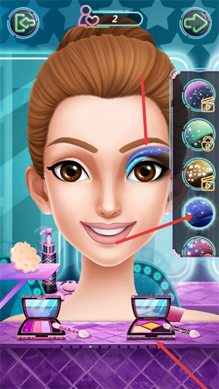 2、能挑選帶有星空效果的眼影,為角色涂抹,下方美妝盒里有多樣眼影可選,打造不同眼妝風格。