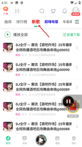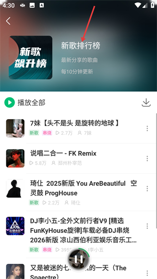 4、新歌分類頁聚焦新歌類DJ串燒內容,支持播放全部與批量下載,是新歌類DJ音樂的集中管理與播放板塊。